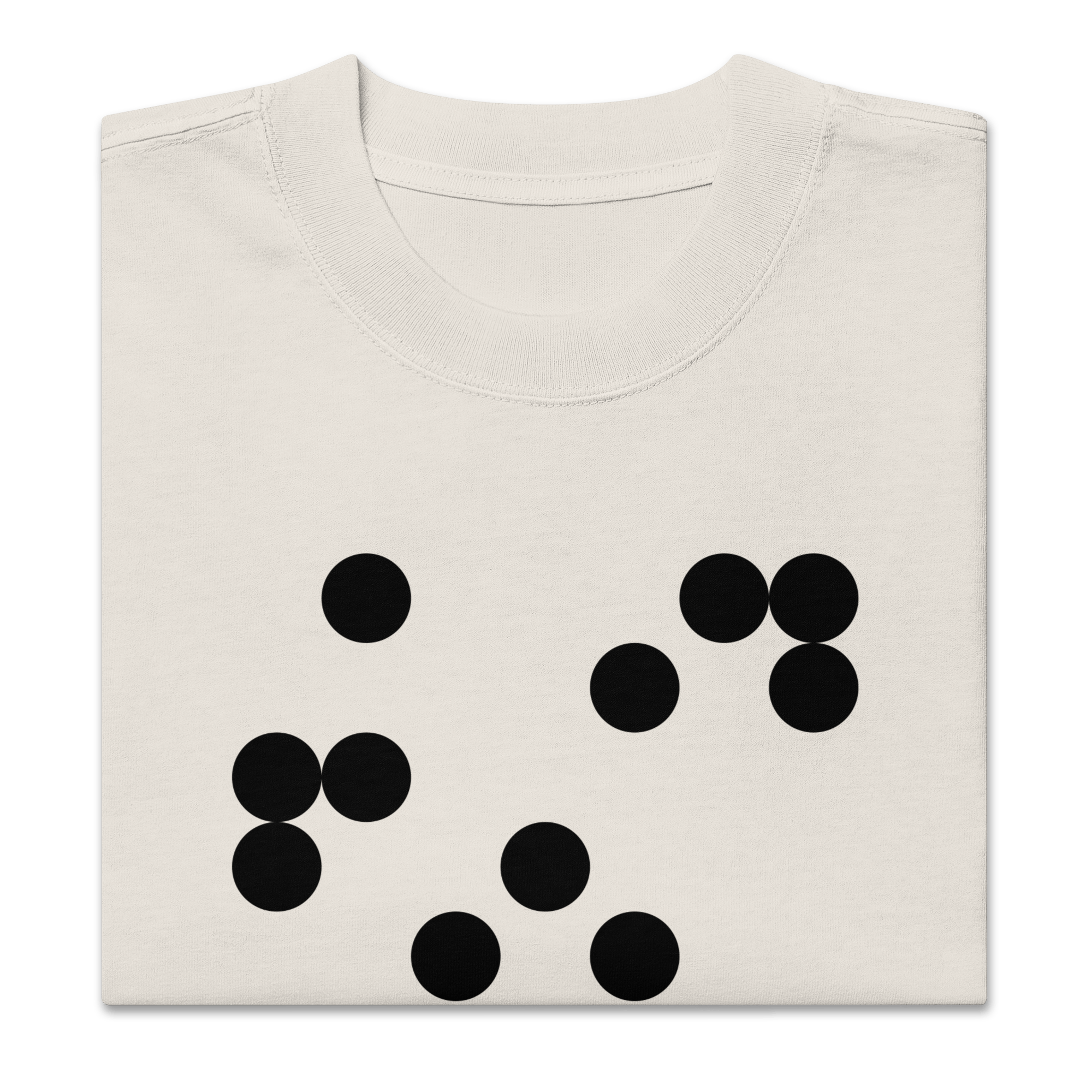 A bold statement piece, this heavyweight (240 g/m²) oversized T-shirt is made from 100% carded cotton. The all-over polka dot pattern is printed to order in Europe using direct-to-garment technology, ensuring vibrant detail with reduced waste. Dropped shoulders and wide ribbed neckline give it a relaxed yet refined edge.